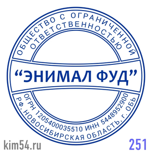 Заказать печать ООО № 251. Срочное изготовление печати ООО - 15 минут. Стандартный срок изготовления печати организации от 2-х до 4-х часов. Размер печати ООО - 38 мм. Если требуется согласование макета печати организации или срочное изготовление печат...