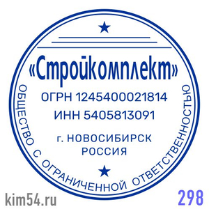 Заказать печать организации, печать ООО № 298 Срочное изготовление печати ООО - 15 минут. Стандартный срок изготовления печати организации от 2-х до 4-х часов. Размер печати ООО - 38 мм. Если требуется согласование макета печати организации или срочное...