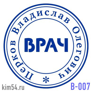 Заказать (купить) печать врача, печать фельдшера В-7. Срочное изготовление печати врача 15 минут. Стандартный срок изготовления печати врача - 2 часа. Печать врача изготавливается диаметром - 25-30 мм. Оптимальный размер врачебной печати составляет 29 ...