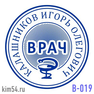 Печать врача В-19. Срочное изготовление печати врача 15 минут. Стандартный срок изготовления печати врача - 2 часа. Печать врача изготавливается диаметром - 25-30 мм. Оптимальный размер врачебной печати составляет 29 мм. Возможно изготовление печати вр...