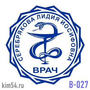 Заказать печать врача В-27. Срочное изготовление печати врача 15 минут. Стандартный срок изготовления печати врача - 2 часа. Печать врача изготавливается диаметром - 25-30 мм. Оптимальный размер врачебной печати составляет 29 мм. Возможно изготовление ...