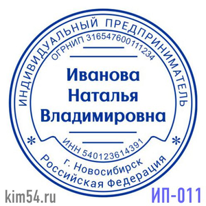 Заказать печать ИП-011. Печать предпринимателя, печать самозанятого гражданина. Срочное изготовление печати - 15 минут. Обычный срок изготовления - 2 часа. Диаметр печати - 38 мм. В печати ИП обязательно указывается ФИО предпринимателя. ИНН, ОГРНИП ука...