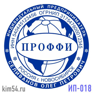 Заказать печать с земным шаром, печать с глобусом. ИП-018. Срочное изготовление печати - 15 минут. Обычный срок изготовления - 2 часа. Диаметр печати - 38 мм. В печати ИП обязательно указывается ФИО предпринимателя. ИНН, ОГРНИП указывается по желанию. ...