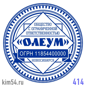 Красивая печать организации № 414 Стандартный срок изготовления печати менее 4-х часов. Если требуется срочное изготовление печати за 20 минут, укажите в заказе. При необходимости утверждение макета печати, укажите при заказе и мы пришлем Вам эскиз печ...