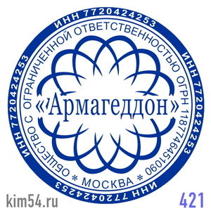Заказать печать ООО № 421. Стандартный срок изготовления печати менее 4-х часов. Если требуется срочное изготовление печати за 20 минут, укажите в заказе. При необходимости утверждение макета печати, укажите при заказе и мы пришлем Вам эскиз печати на ...