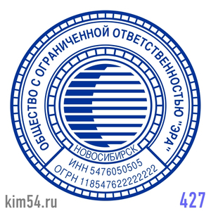 Заказать печать организации с логотипом № 427. Срочное изготовление печати ООО - 15 минут. Обычный срок изготовления печати ООО от 2-х до 4-х часов. Печать организации изготавливается диаметром 38 мм. Если требуется согласование макета печати или срочн...