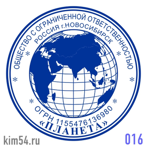 Заказать печать организации № 16. Печать с глобусом. Срочное изготовление печати - 15 минут. Обычный срок изготовления печати ООО от 2-х до 4-х часов. Печать организации изготавливается диаметром 38 мм. Если требуется согласование макета печати или сро...
