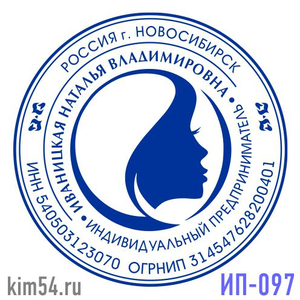 Печать стилиста, парикмахера. Печать салона красоты, печать с женским лицом в профиль. Срочное изготовление печати - 15 минут. Обычный срок изготовления - 2 часа. Диаметр печати - 38 мм. В печати ИП обязательно указывается ФИО предпринимателя. ИНН, ОГР...