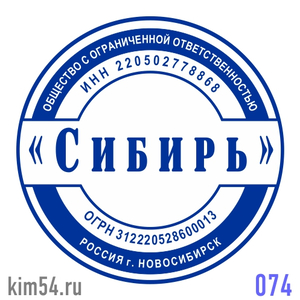 Заказать печать ООО № 74. Срочное изготовление печати ООО - 15 минут. Стандартный срок изготовления печати организации от 2-х до 4-х часов. Размер печати ООО - 38 мм. Если требуется согласование макета печати организации или срочное изготовление печати...
