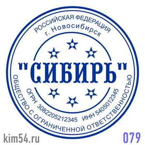 Заказать печать организации № 79. Срочное изготовление печати ООО - 15 минут. Стандартный срок изготовления печати организации от 2-х до 4-х часов. Размер печати ООО - 38 мм. Если требуется согласование макета печати организации или срочное изготовлени...
