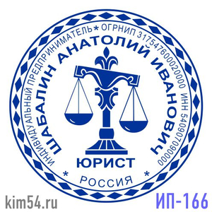 Печать юриста. Заказать печать ИП-166. Срочное изготовление печати - 15 минут. Обычный срок изготовления - 2 часа. Диаметр печати - 38 мм. В печати ИП обязательно указывается ФИО предпринимателя. ИНН, ОГРНИП указывается по желанию. На основе шаблона пе...