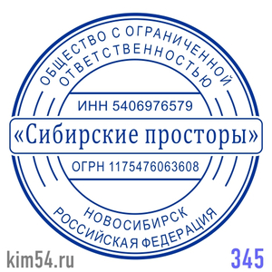 Заказать печать ООО № 345. Срочное изготовление печати ООО - 15 минут. Стандартный срок изготовления печати организации от 2-х до 4-х часов. Размер печати ООО - 38 мм. Если требуется согласование макета печати организации или срочное изготовление печат...