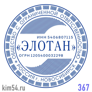 Заказать печать ООО № 367. Срочное изготовление печати ООО - 15 минут. Стандартный срок изготовления печати организации от 2-х до 4-х часов. Размер печати ООО - 38 мм. Если требуется согласование макета печати организации или срочное изготовление печат...