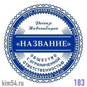 Заказать печать ООО № 183. Срочное изготовление печати ООО - 15 минут. Стандартный срок изготовления печати организации от 2-х до 4-х часов. Размер печати ООО - 38 мм. Если требуется согласование макета печати организации или срочное изготовление печат...