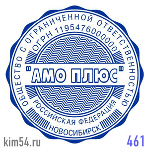 Заказать печать организации с защитной сеткой № 461. Срок изготовления печати от 2-х до 4-х часов. Срочное изготовление печати за 15 минут, если требуется укажите в заказе. Сообщите нам, если необходимо согласование макета печати. Цена указана за клише...