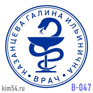 Заказать печать врача В-47. Срочное изготовление печати врача 15 минут. Стандартный срок изготовления печати врача - 2 часа. Печать врача изготавливается диаметром - 25-30 мм. Оптимальный размер врачебной печати составляет 29 мм. Возможно изготовление ...