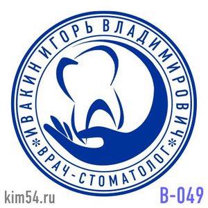 Заказать печать стоматолога В-49. Печать врача - стоматолога изготавливается диаметром - 25-30 мм. Оптимальный размер врачебной печати составляет 29 мм. Возможно изготовление печати врача диаметром 38 мм., в этом случае печать будет стоить дороже. Срок...