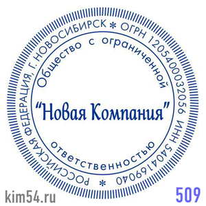 Заказать печать ООО № 509. Срочное изготовление печати ООО - 15 минут. Стандартный срок изготовления печати организации от 2-х до 4-х часов. Размер печати ООО - 38 мм. Если требуется согласование макета печати организации или срочное изготовление печат...