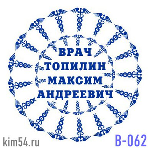 Заказать Печать врача В-62. Срочное изготовление печати врача 15 минут. Стандартный срок изготовления печати врача - 2 часа. Печать врача изготавливается диаметром - 25-30 мм. Оптимальный размер врачебной печати составляет 29 мм. Возможно изготовление ...