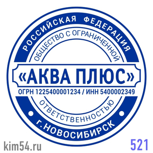 Заказать печать ООО № 521. Срочное изготовление печати ООО - 15 минут. Стандартный срок изготовления печати организации от 2-х до 4-х часов. Размер печати ООО - 38 мм. Если требуется согласование макета печати организации или срочное изготовление печат...