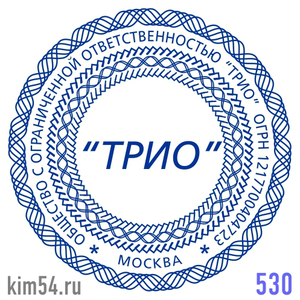Заказать печать ООО № 530. Срочное изготовление печати ООО - 15 минут. Стандартный срок изготовления печати организации от 2-х до 4-х часов. Размер печати ООО - 38 мм. Если требуется согласование макета печати организации или срочное изготовление печат...