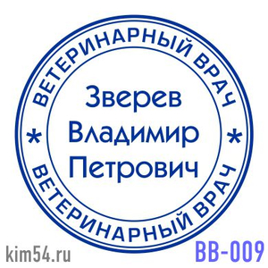 Заказать печать ветеринарного врача ВВ-9. Диаметр печати ветеринарного врача 29 мм. (если требуется другой размер, сообщите). Заказывая печать ветеринарного врача можно указать ученную степень или специализацию. Необходимо, что бы печать содержала фами...