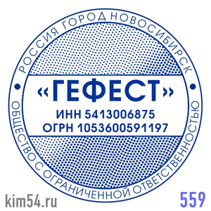 Заказать печать с элементами защиты № 559. Срочное изготовление печати ООО - 15 минут. Стандартный срок изготовления печати организации 2 часа. Размер печати ООО - 38 мм.