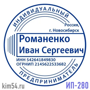 Печать предпринимателя. Заказать печать ИП-280 Срочное изготовление печати предпринимателя - 15 минут. Стандартный срок изготовления печати ИП от 2-х до 4-х часов. Печать индивидуального предпринимателя изготавливается диаметром 38 мм. В печати ИП обяз...