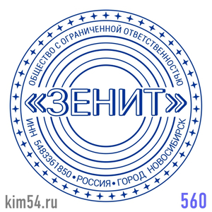 Заказать печать ООО № 560. Срочное изготовление печати ООО - 15 минут. Стандартный срок изготовления печати организации от 2-х до 4-х часов. Размер печати ООО - 38 мм. Если требуется согласование макета печати организации или срочное изготовление печат...