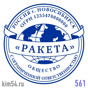 Печать ООО № 561. Печать с земным шаром. Срочное изготовление печати ООО - 15 минут. Стандартный срок изготовления печати организации от 2-х до 4-х часов. Размер печати ООО - 38 мм. Если требуется согласование макета печати организации или срочное изго...