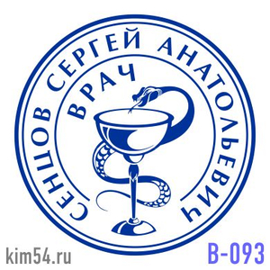 Заказать печать врача В-93. Срочное изготовление печати врача - 15 минут. Стандартный срок изготовления печати врача от 2-х до 4-х часов. Печать врача изготавливается диаметром - 25-30 мм. Оптимальный размер врачебной печати составляет 29 мм. Возможно ...
