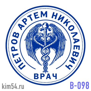 Заказать стильную печать врача В-98. Кадуцей на печати врача. Срочное изготовление печати врача - 15 минут. Стандартный срок изготовления печати врача от 2-х до 4-х часов. Печать врача изготавливается диаметром - 25-30 мм. Оптимальный размер врачебной ...