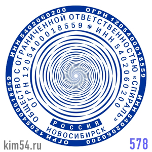 Заказать печать с геометрическим круговым узором и инверсионным текстом. Срочное изготовление печати ООО - 15 минут. Стандартный срок изготовления печати организации от 2-х до 4-х часов. Размер печати ООО - 38 мм. Если требует...