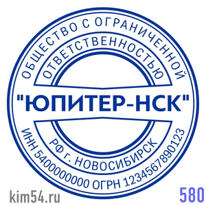 Заказать печать организации № 580. Срочное изготовление печати ООО - 15 минут. Стандартный срок изготовления печати организации от 2-х до 4-х часов. Размер печати ООО - 38 мм. Если требуется согласование макета печати организации или срочное изготовлен...