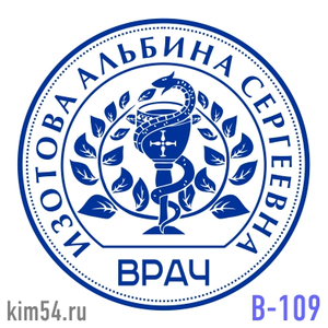 Красивая печать врача с лавровым венком и Сосудом Гигеи, печать со змеёй В-109. Срочное изготовление печати врача 15 минут. Стандартный срок изготовления печати врача - 2 часа. При заказе печати можно указать специализацию врача (терапевт, хирург, дерм...