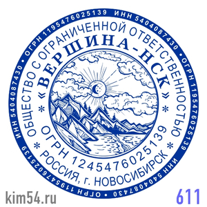 Заказать красивую печать с горами, морем № 611. Срочное изготовление печати ООО - 15 минут. Стандартный срок изготовления печати организации от 2-х до 4-х часов. Размер печати ООО - 38 мм.
