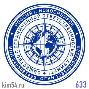 Печать с земным шаром, печать с азимутом № 633. Срочное изготовление печати ООО - 15 минут. Стандартный срок изготовления печати организации от 2-х до 4-х часов. Размер печати ООО - 38 мм. Если требуется согласование макета печати организации или срочн...