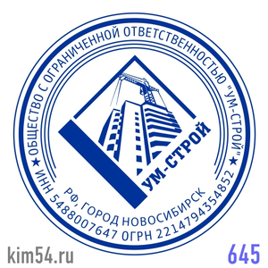 Печать строительной компании, печать застройщика № 645 Срочное изготовление печати организации - 15 минут. Стандартный срок изготовления печати организации от 2-х до 4-х часов. Размер печати - 38 мм. Если требуется согласование макета печати организаци...