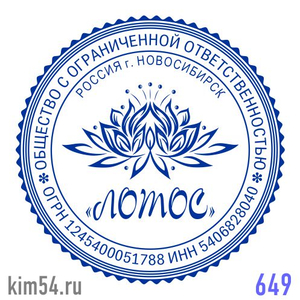 Заказать печать с цветком лотоса № 649. Срочное изготовление печати ООО - 15 минут. Стандартный срок изготовления печати организации от 2-х до 4-х часов. Размер печати ООО - 38 мм.