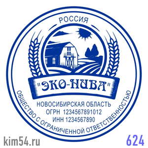 Заказать печать с фермой, печать с колосками № 624. Срочное изготовление печати ООО - 15 минут. Стандартный срок изготовления печати организации от 2-х до 4-х часов. Размер печати ООО - 38 мм.