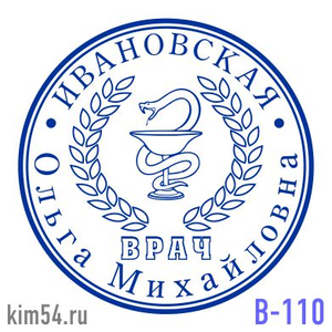 Красивая печать врача с лавровым венком и Сосудом Гигеи, печать со змеёй В-110. Срочное изготовление печати врача - 15 минут. Стандартный срок изготовления печати врача от 2-х до 4-х часов. Печать врача изготавливается диаметром - 25-30 мм. Оптимальный...