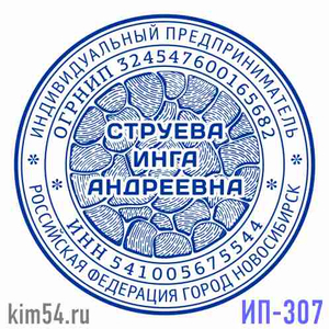 Печать предпринимателя ИП-307. Срочное изготовление печати предпринимателя - 15 минут. Стандартный срок изготовления печати ИП от 2-х до 4-х часов. В печати ИП обязательно указывается ФИО предпринимателя, ИНН, ОГРНИП указывается по желанию. Печать инди...