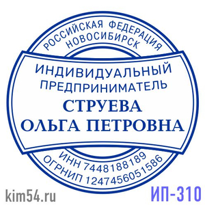 Печать предпринимателя, печать ИП-310. Срочное изготовление печати предпринимателя - 15 минут. Стандартный срок изготовления печати ИП от 2-х до 4-х часов. В печати ИП обязательно указывается ФИО предпринимателя, ИНН, ОГРНИП указывается по желанию. Печ...