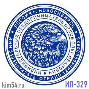 Заказать печать печать с орлом. Печать предпринимателя ИП-329. Срочное изготовление печати предпринимателя - 15 минут. Стандартный срок изготовления печати ИП от 2-х до 4-х часов. В печати ИП обязательно указывается ФИО предпринимателя, ИНН, ОГРНИП ука...