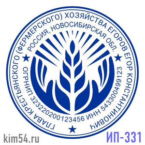 Печать на сельскохозяйственную тему. Заказать печать КФХ-331. Срочное изготовление печати предпринимателя - 15 минут. Стандартный срок изготовления печати ИП от 2-х до 4-х часов. В печати ИП обязательно указывается ФИО предпринимателя, ИНН, ОГРНИП указ...