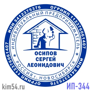 Печать с домом и стройкой, печать предпринимателя, печать ИП-344. Срочное изготовление печати предпринимателя - 15 минут. Стандартный срок изготовления печати ИП от 2-х до 4-х часов. В печати ИП обязательно указывается ФИО предпринимателя, ИНН, ОГРНИП ...