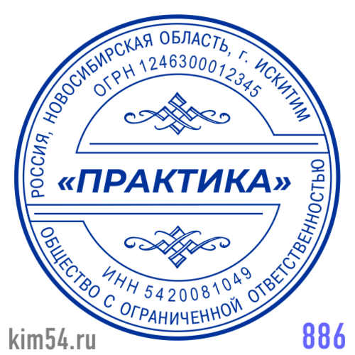 Заказать печать организации с геометрическим узором № 886 Срочное изготовление печати ООО - 15 минут. Стандартный срок изготовления печати организации от 2-х до 4-х часов. Размер печати ООО - 38 мм. Если требуется согласование макета печати организации...