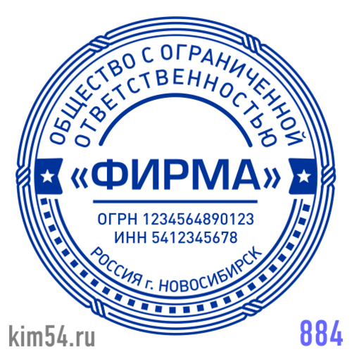 Печать организации с рамкой № 884. Срочное изготовление печати ООО - 15 минут. Стандартный срок изготовления печати организации от 2-х до 4-х часов. Размер печати ООО - 38 мм. Если требуется согласование макета печати организации или срочное изготовлен...