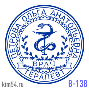 Печать врача с указанием специальности В-138. Срочное изготовление печати врача 15 минут. Стандартный срок изготовления печати врача - 2 часа. При заказе печати можно указать специализацию врача (уролог, терапевт, хирург, дерматолог, стоматолог, офталь...