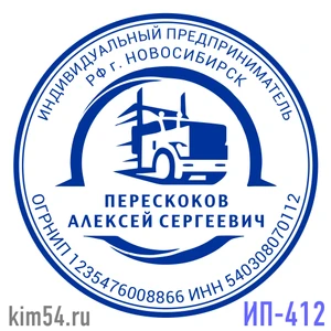 Печать с грузовиком, печать ИП-412 Срочное изготовление печати предпринимателя - 15 минут. Стандартный срок изготовления печати ИП - 2 часа. На основе печати предпринимателя можно изготовить печать самозанятого гражданина. В печати ИП обязательно указы...